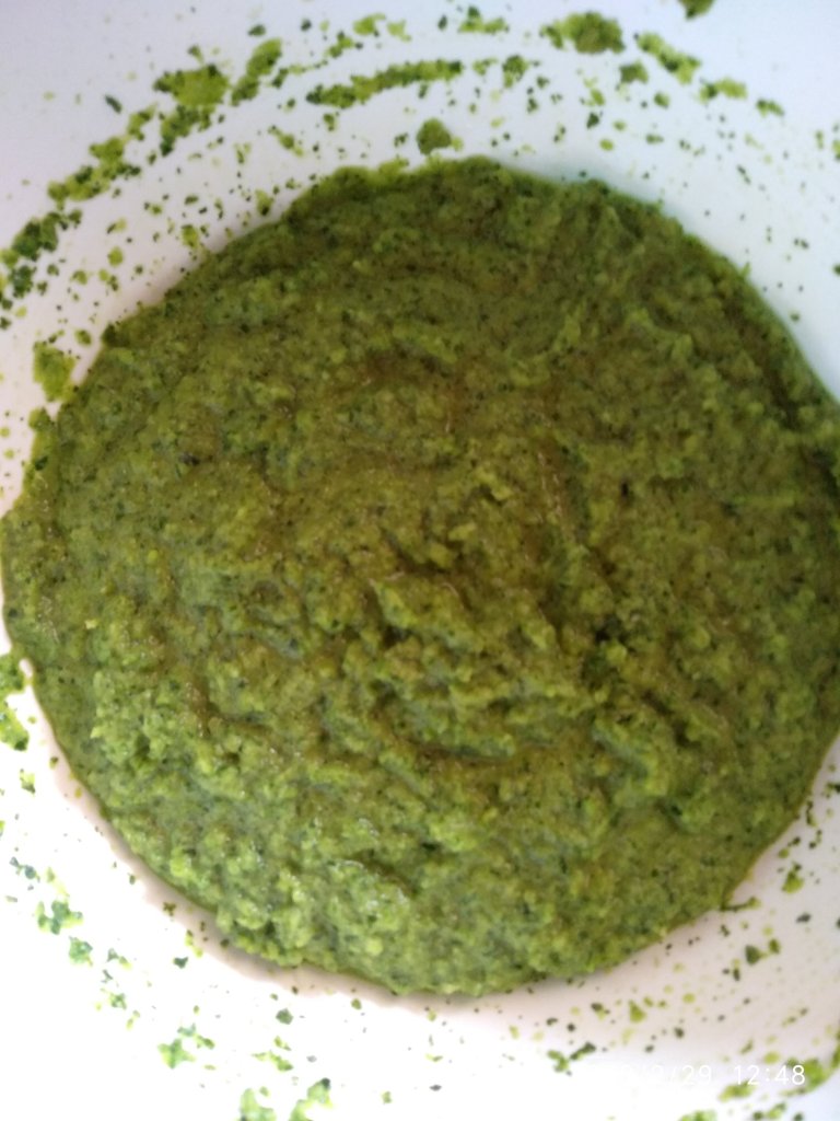 Tagliare a listarelle la buccia verde delle zucchine, farle bollire per cinque minuti. Scolare e dopo averle passate in acqua fredda farle frullare con un po’ di olio extravergine fino ad ottenere una crema verde.