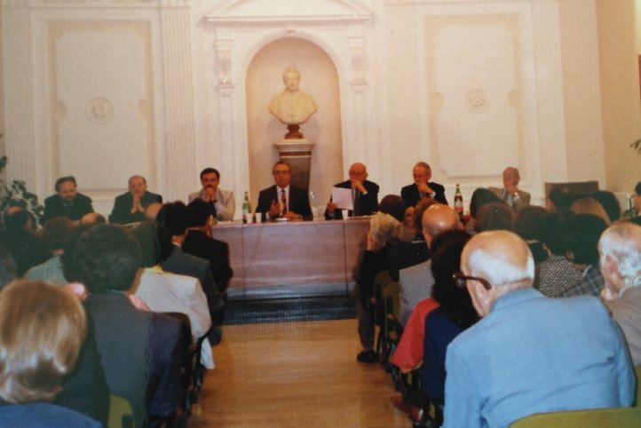 Dal libro “Capua e gli ozi del 2000 – dalla città fortezza alla città cultura nella Campania che cambia” (Adolfo Villani – Edizioni CUEN Napoli 1996). Immagini del 1996: presentazione del libro nel salone Capecelatro dell’Arcidiocesi di Capua. Da sinistra: Adolfo Villani, Don Giuseppe Centore; Nino Daniele (all’epoca capogruppo PDS nel Consiglio regionale della Campania); Ermanno Corsi (giornalista RAI); Antonio Rastrelli (all’epoca presidente della Giunta regionale della Campania); Gian Marco Iacobitti (all’epoca Soprintendente dei Beni Culturali di Caserta e Benevento); Francesco Lucarelli (Preside della Facoltà di Economia della Federico II di Napoli).