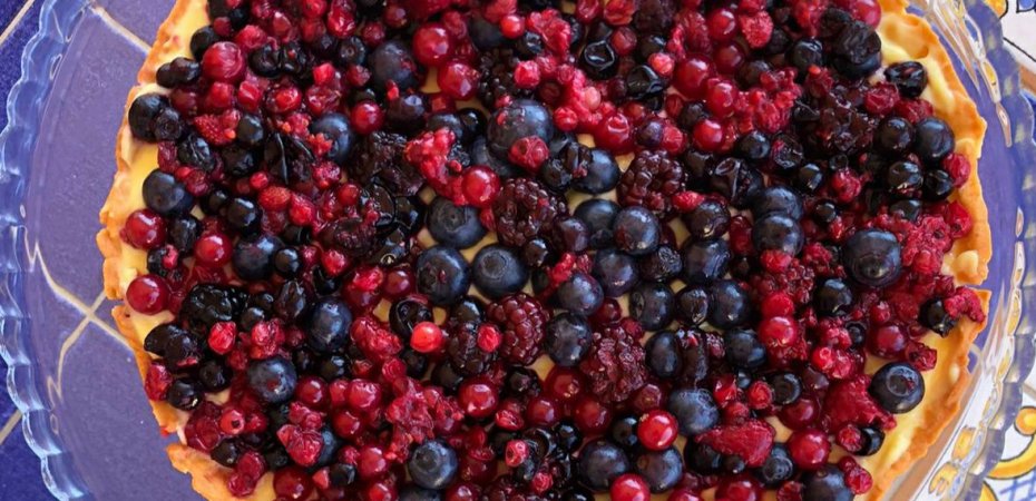 Ricetta di Eleonora. Per la base di pasta frolla: 200 grammi di semola di grano, un uovo e un tuorlo, 100 grammi di burro, 100 grammi di zucchero, un pizzico di sale. Per la crema pasticcera: 4 tuorli, 40 grammi di maizena, 150 grammi di zucchero, 400 grammi di latte, scorza di limone e pizzico di sale. Frutta a piacere. Per questa ricetta abbiamo usato frutti di bosco misti.