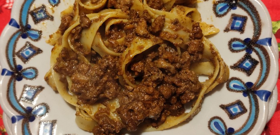 Per 6 persone 480 g di pappardelle 500 grammi di cinghiale tagliato a piccoli cubetti, 500 grammi di passata di pomodoro, 1 bottiglia di Barolo, cipolla carota sedano, foglia di alloro, bacche di ginepro, olio extravergine.