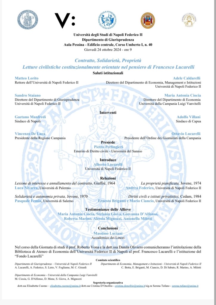 Non spetta a me parlare dei lavori scientifici del professor Francesco Lucarelli, anche se, trattandosi di studi fortemente ancorati al carattere sociale della nostra Costituzione, assumono un valore politico attuale se proiettati nel dibattito sulla costruzione di una Europa politica che abbia al centro non solo la tutela della concorrenza, ma soprattutto i diritti fondamentali di cittadinanza, considerati nella loro indivisibilità di diritti civili, politici e sociali. Ma è questa una giornata in memoria del professor Francesco Lucarelli e dunque a me tocca testimoniare il suo legame con la città di Capua. Un legame rivelatore del suo modo di intendere il ruolo dell’Università nel processo di valorizzazione del territorio e dell’interesse che ha coltivato per gli studi sulla pianificazione urbana e il recupero dei centri storici. Un legame, come raccontò lui stesso nell’intervento all’inaugurazione dell’anno Accademico 1992/93 della Facoltà di Economia e Commercio di Capua, nato una mattina del settembre del 1991, quando, leggendo il Mattino, apprese che il giorno precedente il Consiglio Regionale della Campania aveva localizzato nella nostra città la Facoltà di Economia e Commercio dell’allora costituendo Secondo Ateneo della Campania. Immediatamente telefonò al Comune. Erano le 8.20 del mattino. Qualche ora dopo era già a Capua per incontrare gli amministratori ed avanzare una proposta, che a noi sembrò in quel momento una missione impossibile: far partire nel giro di qualche mese il corso di Economia Aziendale in città per gemmazione della Facoltà di Economia dell’Università Federico II di Napoli. Praticamente un anno prima della formale istituzione del Secondo Ateneo. Per noi – che sapevamo come la scelta di Capua, quale sede della Facoltà, fosse stata contrastata, nonostante la presenza, in un centro storico di prim’ordine, di un notevole patrimonio immobiliare demaniale, costituito da ex architettura religiosa e militare, in gran parte in stato di abbandono pur se vocato ad un riuso di carattere culturale e formativo – il sostegno e la determinazione del Preside della Facoltà di Economia della Federico II fu motivo di conforto e di incoraggiamento. Francesco Lucarelli fin da subito riuscì a stabilire con tutti noi un rapporto di empatia, a trasmetterci il suo incontenibile entusiasmo, che ben presto si rivelò un tratto caratteriale di una personalità particolarmente estroversa, socievole, determinata, autentica, che affrontava i suoi compiti con grande generosità. A me ispirò fiducia a prima vista in una misura che generalmente matura nei confronti di una persona che conosci da tempo. In pochi attrezzammo, non senza ricorrere a qualche forzatura sulle procedure amministrative, dei locali dell’Istituto Magistrale – intitolato a Salvatore Pizzi, fondatore a Capua della prima Normale femminile del Mezzogiorno – consentendo l’avvio già il 13 gennaio del 1992 del primo corso con 220 studenti immatricolati al primo anno e in gran parte trasferiti da Napoli e da Cassino. L’anno successivo l’anno accademico partì con oltre 1000 iscritti, con la disponibilità, oltre che dell’Aula Magna, di 7 aule, laboratori e studi di professori, una biblioteca e due laboratori linguistici, raggiungendo in pochi anni le 4000 unità. Anche dopo l’istituzione del II Ateneo Francesco Lucarelli mantenne il rapporto non solo con la Facoltà di Economia Aziendale ma anche con la città di cui apprezzava l’enorme valore storico e culturale. Il suo non fu un impegno legato ad una visione di protagonismo personale – che non gli è mai appartenuta – ma la conseguenza della convinzione che avviare nelle migliori condizioni possibili la Facoltà di Economia a Capua, poteva determinare l’inizio di un disegno sociale, economico, evolutivo di una città di cui conosceva, da autorevole e riconosciuto studioso dei centri storici, le straordinarie qualità urbanistiche ed architettoniche. Di qui la scelta di rimanere ad insegnare a Capua, di coinvolgere fin dal primo corso alcune delle migliori risorse della Facoltà partenopea e di promuovere uno studio che individuò la sede definitiva della nuova Facoltà “nell’insieme costituito dai due complessi conventuali dei Gesuiti e delle Dame Monache”, oltre che dalla Chiesa di Santa Maria delle Dame Monache, un vero gioiello dell’architettura religiosa che lui giudicava ideale sede dell’Aula magna e della Biblioteca. Un progetto poi realizzato solo in parte perché passarono degli anni per convincere il Rettorato a firmare la concessione d’uso di uno dei due ex conventi, a causa delle forti spinte interne di chi voleva costruire la nuova sede fuori del centro storico per meri calcoli economici. Insomma in Francesco Lucarelli c’era la consapevolezza dell’approdo del dibattito internazionale sulla pianificazione urbanistica che, dalla propensione al decentramento tipica degli anni ’50 si era progressivamente rivolta alla rivalutazione della concentrazione urbana, nel tentativo di razionalizzare l’espansione illimitata delle aree metropolitane – che in Campania già aveva assunto da decenni una dimensione regionale (da Capua, passando per Napoli, fino a Salerno) – e di restituire nuove funzioni ad emergenze architettoniche come ex conventi, caserme, bastioni, destinati a un lento ed inesorabile abbandono se non portati a recuperare nuove e moderne funzioni in luogo di quelle superate dall’evoluzione dell’economia e della società. Non a caso fu promotore anche della proposta di inserire il paesaggio culturale di Capua nel patrimonio Mondiale dell’Unesco, avanzata nel convegno “Capua Centro Storico vitale dall’Antichità all’Età moderna – tutela, recupero e rivitalizzazione”, tenutosi presso il Museo Provinciale Campano il 15 dicembre del 1995, coordinato da Francesco Lucarelli e Manlio Ingrosso, i cui atti sono riportati in un elegante volume. L’Amministrazione comunale 