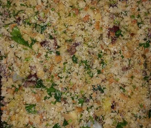 Una ricetta che piace anche a chi non ama il baccalà. Per 4 persone. Tagliare 0,5 Kg di patate a fette di mezzo cm di spessore. In una teglia unta di olio extravergine di oliva disponete uno strato di patate, poi uno di baccalà (0,5 Kg), coprite con le restanti patate. Coprite il tutto con pane saporito (pan grattato,prezzemolo, basilico, capperi, olive nere di Gaeta, parmigiano e pecorino). Versare olio extravergine e mezzo bicchiere di falanghina. Far cuocere in forno a 180 gradi per 30/40 minuti.