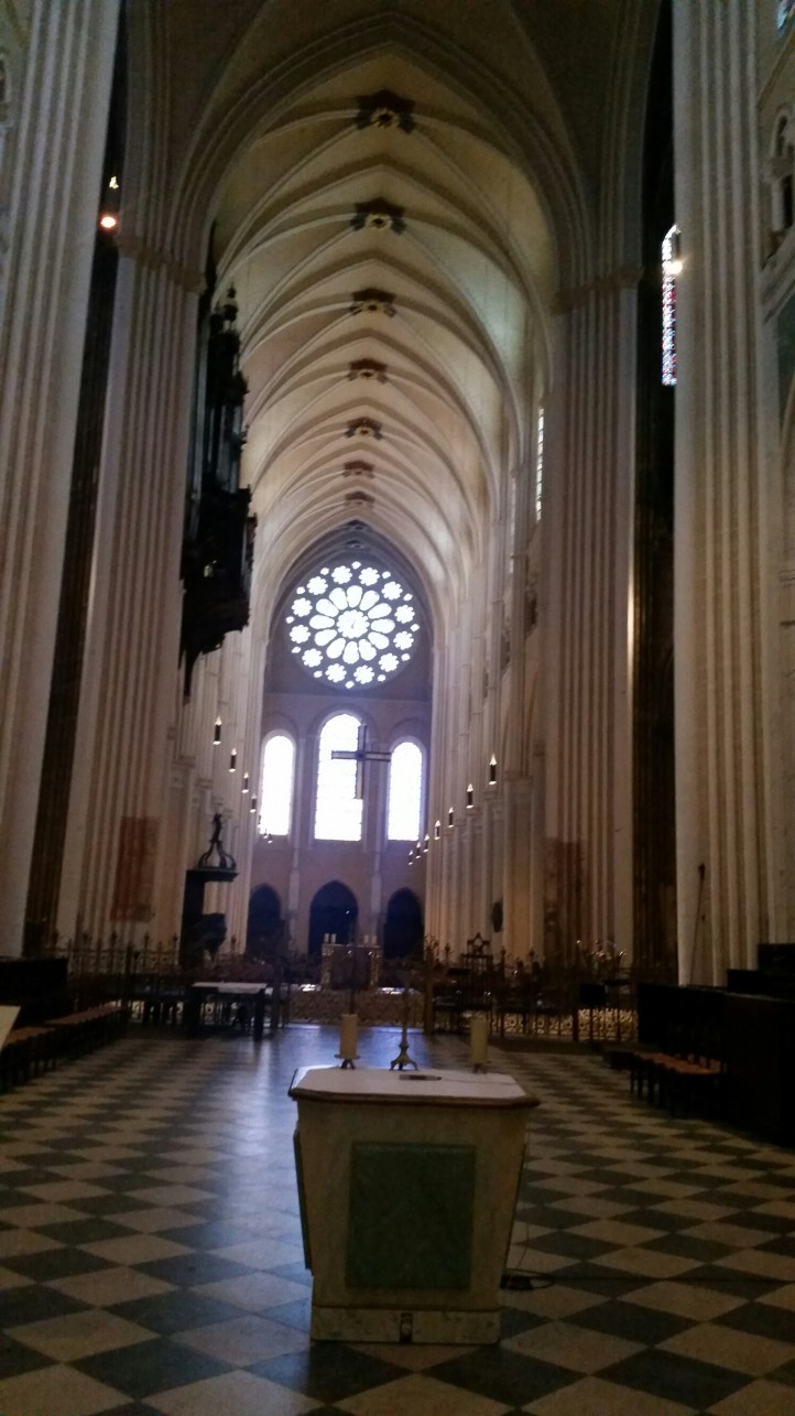 Il tempo di un caffè e siamo di nuovo in macchina per percorrere altri 50 km e arrivare a Chartres dove, ci dice Antonio, c’è una cattedrale patrimonio dell’Unesco che è considerata “l’Acropoli di Francia”. La Cattedrale è davvero imponente. Si intravede dall’autostrada già a 15 chilometri dal piccolo e ordinatissimo Paese. Praticamente lo sovrasta.