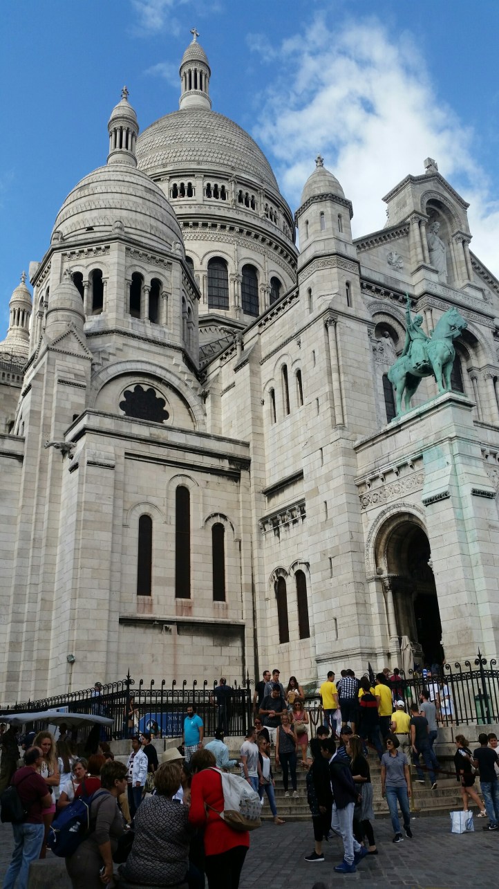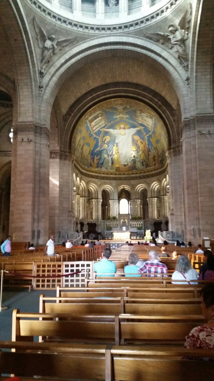 Anche se stanchi dei 16000 passi di Chateau de Vaux, appena rientrati a Parigi ci concediamo una lunga passeggiata nella pittoresca collina di Montmartre, da sempre meta di artisti, pittori e poeti. Luogo d’arte ma anche di religiosità. Nel 1875, grazie ad un voto di due ricchi uomini di affari per la salvezza di Parigi dal lungo assedio prussiano del 1870, iniziarono i lavori della imponente Basilica del Sacro Cuore di Cristo, ultimata nel 1914. Quella è la nostra prima metà che richiede una lunga paziente fila sotto il sole che alle sei di sera picchia ancora forte. Poi Antonio e Marilena decidono di partecipare ad una messa presso la vicina Chiesa St-Pierre de Montmartre che durante la rivoluzione francese fu trasformata in Tempio della Ragione